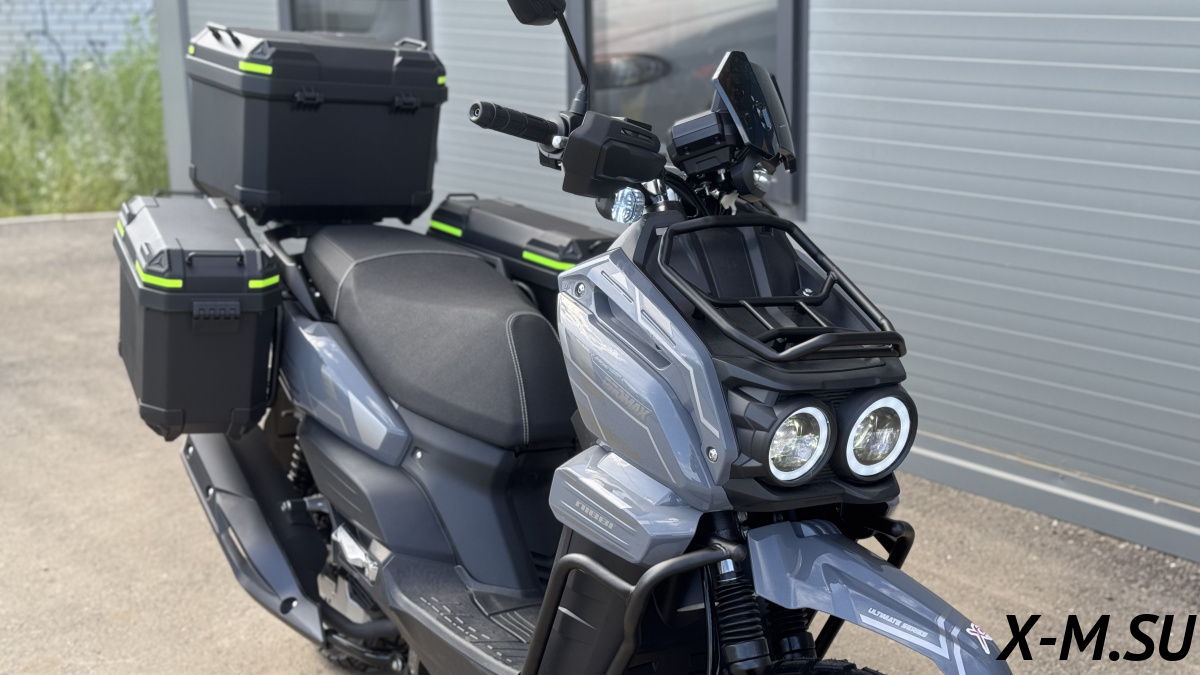 Крутой скутер, PROMAX STALKER ARMY! Мощный движок, отличная управляемость. Рама реально крепкая, чувствуется качество материала. Все детали фирменные, Malossi, PROMAX - надежно и долговечно. Электро- и кикстартер - удобно. Панель приборов чёткая, информативная. За такую цену - лучше не найти! Советую всем!